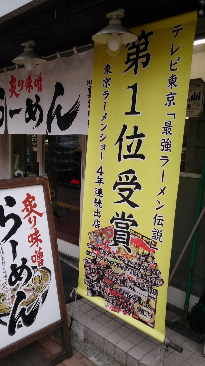 「炙り味噌」と看板に書かれていたので注文しましたが…。これって人気札幌ラーメン店「すみれ」の手法ですよね。出てきたラーメンもショウガが入ったのも同じ。壁には「すみれの家系図」なるものがはられています。すみれのオヤジさんは知っているのでしょうか。テレビ東京の番組で1位になったという暖簾も胡散臭くしか見えません。独自のラーメンを作ってほしいと思います。