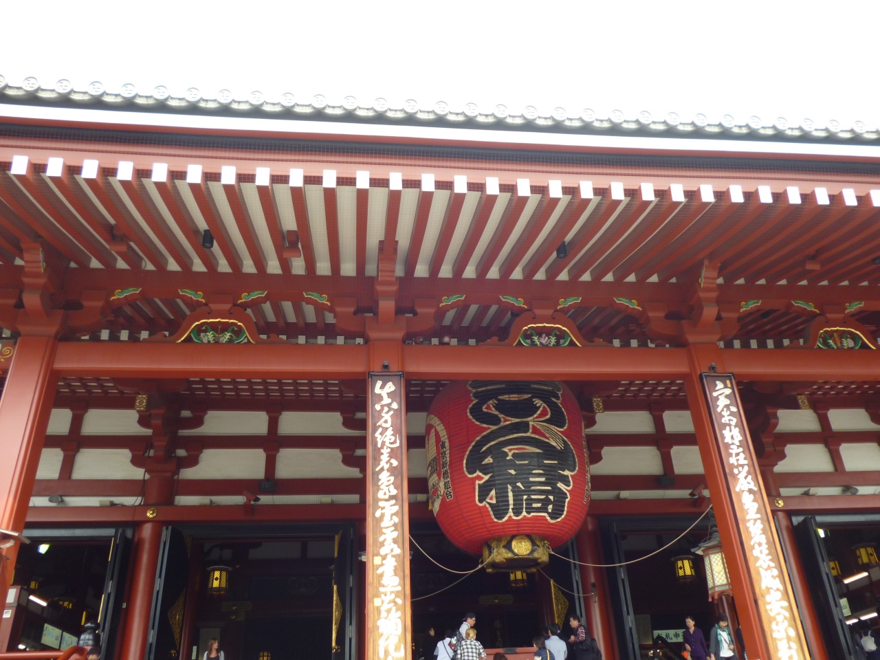 雷門をくぐって、仲見世通りの人の波に負けずに、本堂に着きました。大きな提灯がありました。1400年の歴史のある古刹です。すべての願いがかなうといわれているありがたいお寺です。外国からの参拝者が多かったです。
