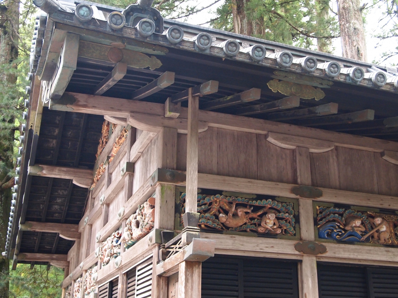 神厩舎(しんきゅうしゃ)は重要文化財)であり、昔から猿が馬を守るとされているところから、猿の彫刻が8面あり人間の一生が風刺されています。