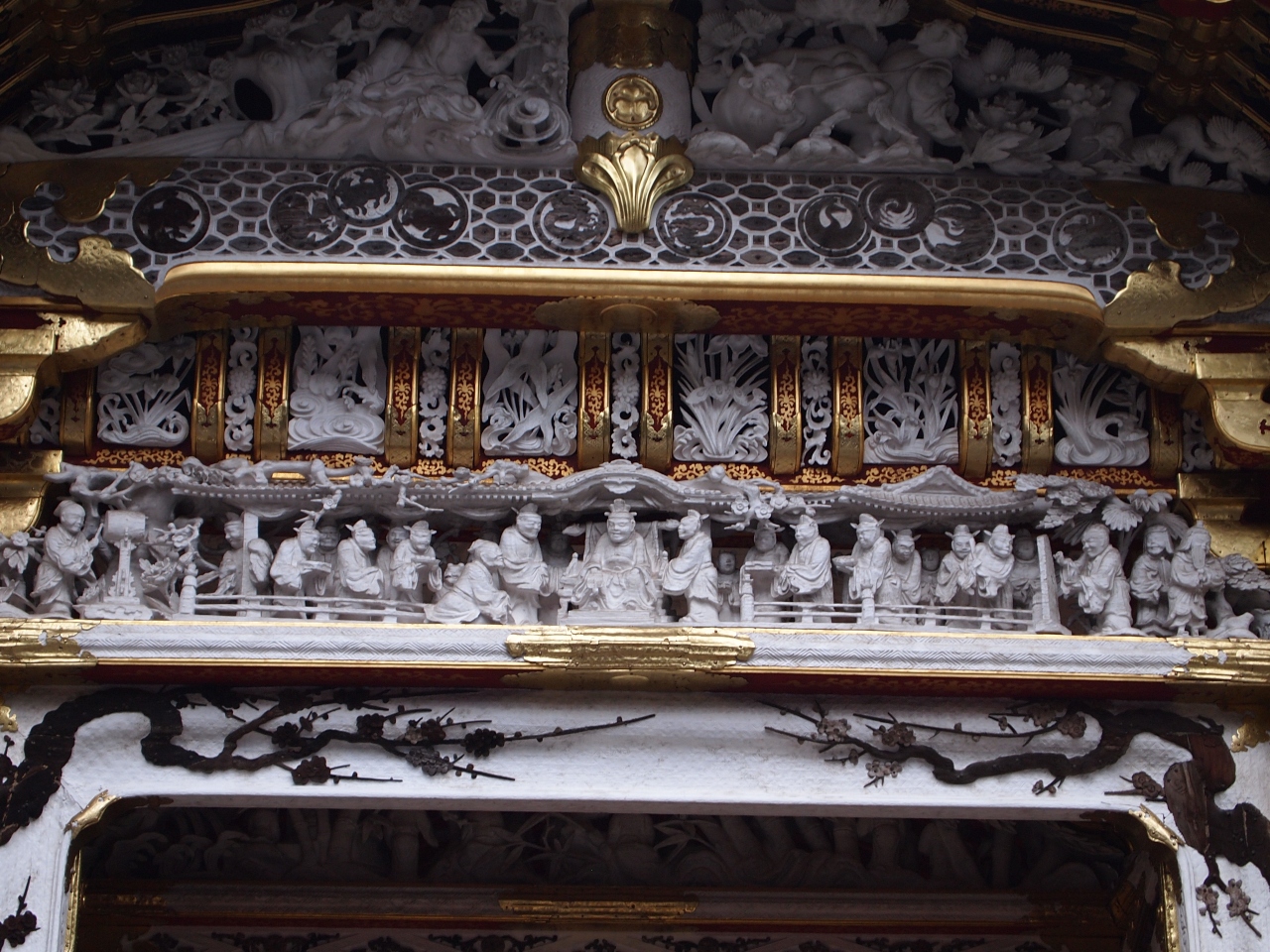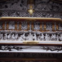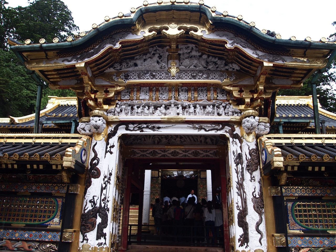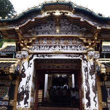 東照宮唐門(とうしょうぐうからもん)は(国宝)に指定されており、全体が胡粉(ごふん)で白く塗られ細かい彫刻がほどこされているのが特徴です。