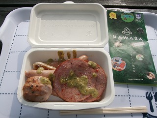 各種手作りハムやソーセージ、ベーコンを焼いて盛り合わせた「山賊焼き」(500円)を食べました。スープやさらにライスもセットにすることができます。
