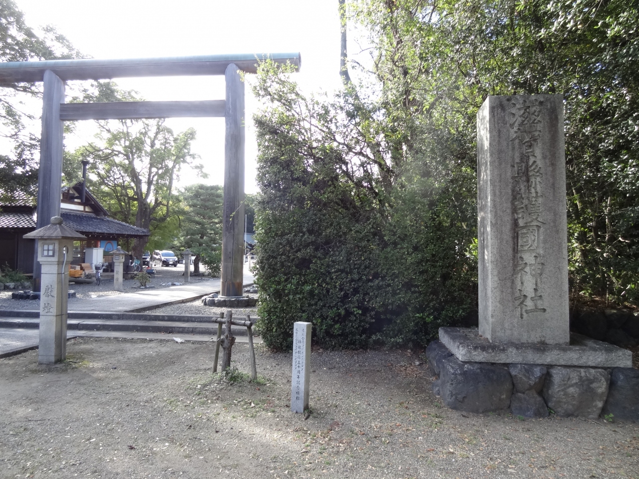 彦根城のすぐ隣にある滋賀県出身の戦没者を祀る神社。静かで厳かな雰囲気。境内には平和への願いをこめた父の像や平和の礎など様々なモニュメントがあり、今も新しい記念碑を建立している。しかし、なぜか商売繁盛や安産祈願などのご祈祷も行われている。近江商人との関わりか?