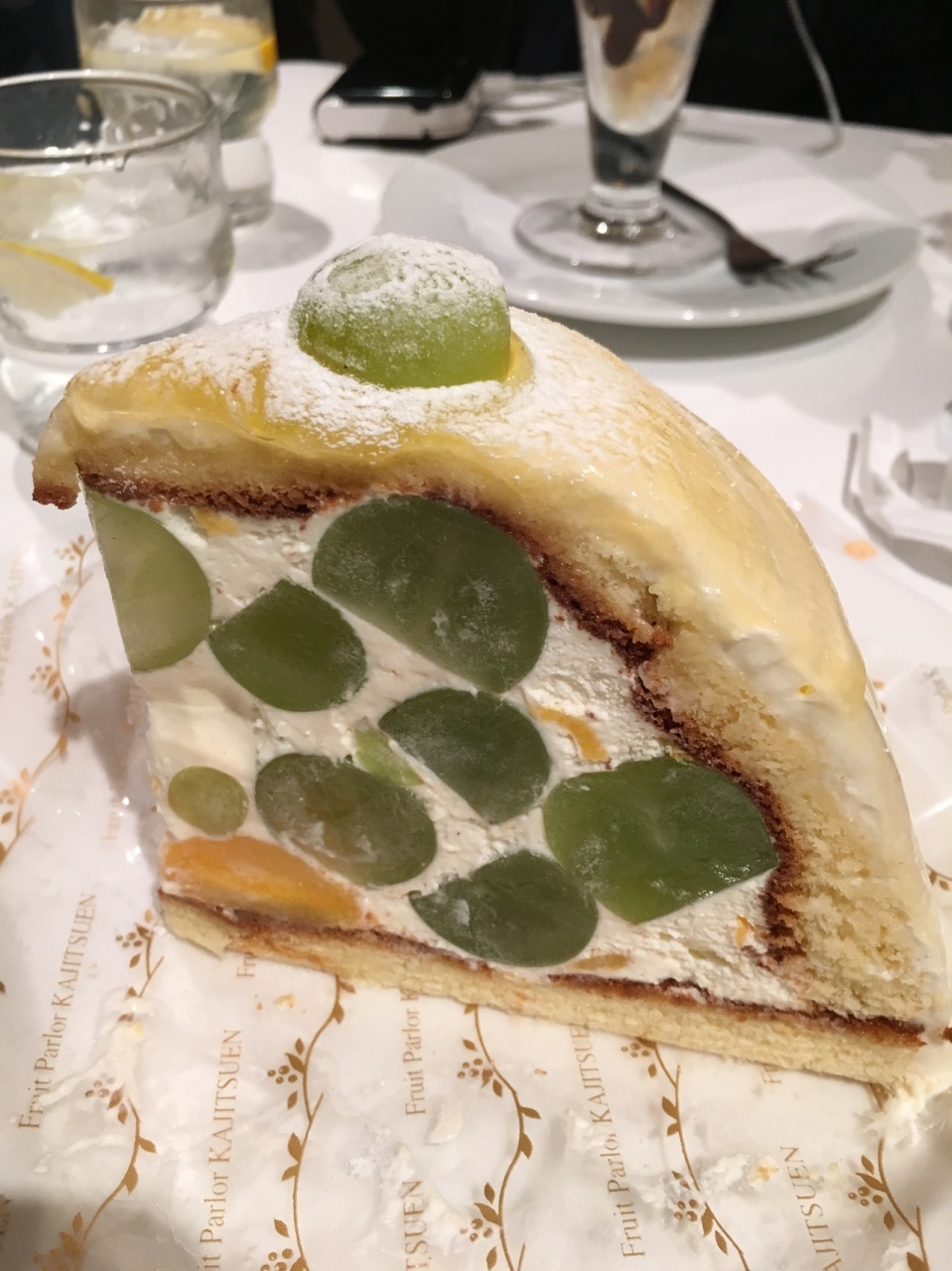 ビワとマスカットは少し酸味が有るので甘いスポンジケーキと