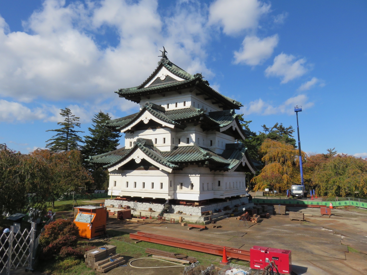 現在、弘前城本丸の石垣が外側に膨らむ「はらみ」がみられ、天守真下から石垣の一部を修理される事となりました。