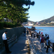 関門橋の九州側の直下の海沿いで、潮風を感じながらゆっくりと歩くことができる遊歩道で、土休日でもたくさんの人がごったがえしていることもなく、まったりとお散歩をすることができる雰囲気があります。ノーフォーク側と関門トンネル人道入口までの間を歩くか、逆に人道入口と関門海峡めかり駅まで歩くのが適当な距離で良いと思います。いずれも門司港方面から和布刈方面にバスが頻繁に出ていますし、時期によってはレトロトレインで来れるので便利です。この歩道自体は最も九州と本州が近い場所なので本州側の様子がハッキリと見えて楽しいです。