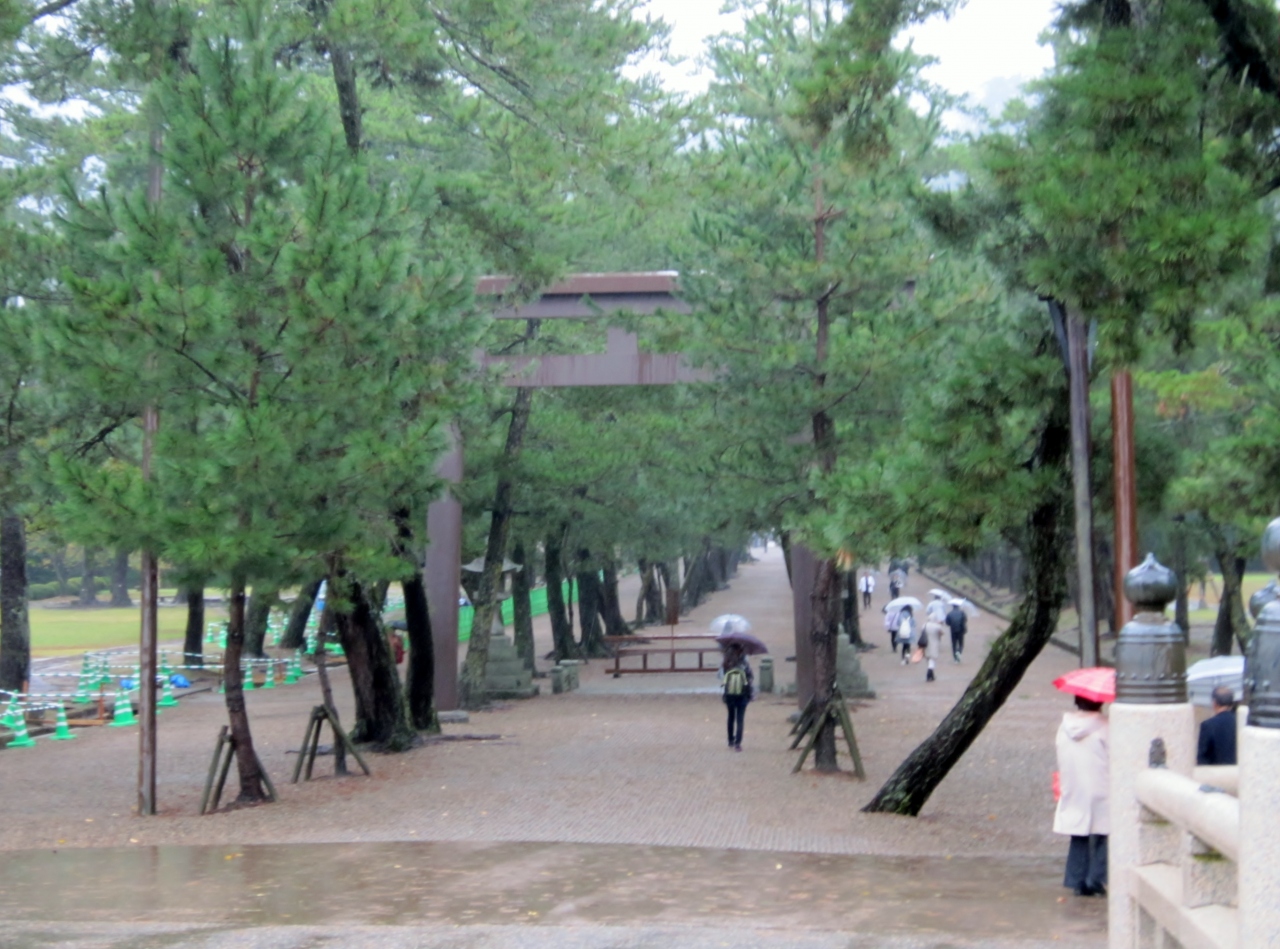 松の並木道の中央は神様やが通るため空けるべきとのことでした。