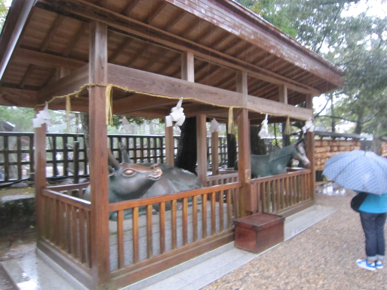 出雲大社の四の鳥居を潜ると、すぐ左に神馬・神牛が鎮座されています。