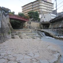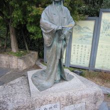 有馬温泉駅を出るとひときわ赤い欄干の橋が目につきます。これがねねの橋です。この橋の側にはねねの立像があり、観光客が多く記念撮影をしています。またねねの像の側には有馬六景を紹介している。ねねの像と有馬川を隔てて向かい合って湯けむり広場には秀吉の座像があります。