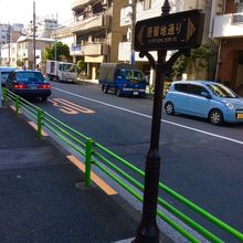 昨年の2014年に、聖路加国際病院と明石小学校の間を東西に走る通りに、新たについた名前が居留地通りです。明石小学校前でセレモニーが行われ、ブラスバンドの演奏、聖路加国際病院の日野原重明先生のご挨拶等がありました。