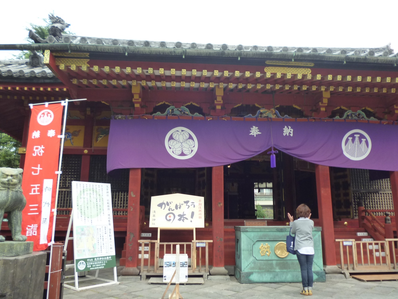 浅草寺の境内にある静かな神社で、緑豊かでした。5月に三社祭りあることで有名です。3人の神様をお祀りした神社で、その三社を慰めるお祭りが三社祭だそうです。各町内から神輿が100基集まるいせいのよいお祭りです。