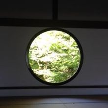 今までに何種類かのポスターや雑誌の写真でみたことのある、悟りの窓、迷いの窓、があるお寺です。