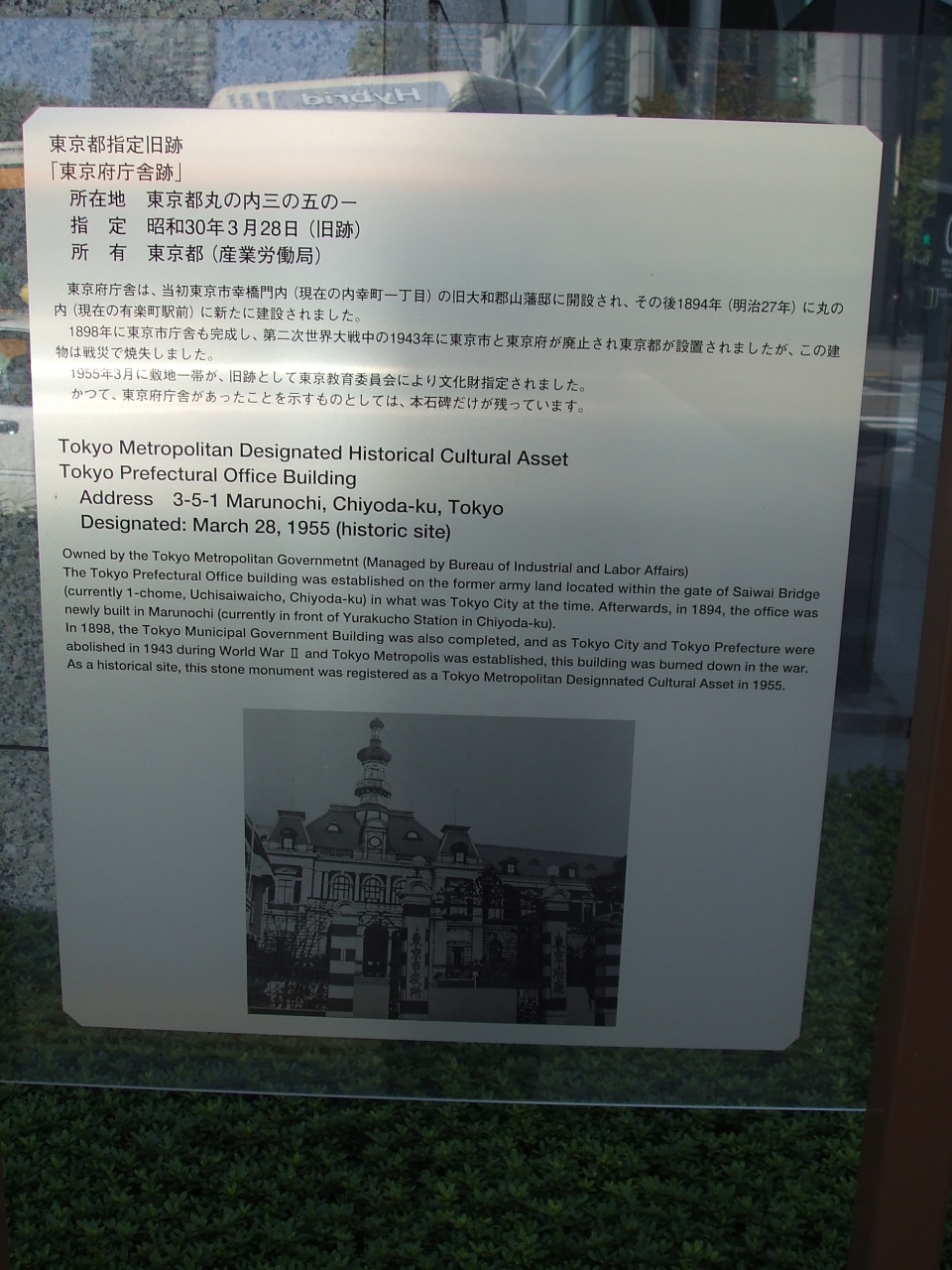 ここに東京府庁舎があったことを示すものとして、