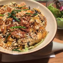 元町商店街内にあるカフェです。女子が好きそうな白木の和み系空間。夕方にランチを食べに来ました。豆ご飯を使った丼をチョイス。優しい味でほっこりしました。こちらははらドーナツの系列店なのでドーナツもあります。