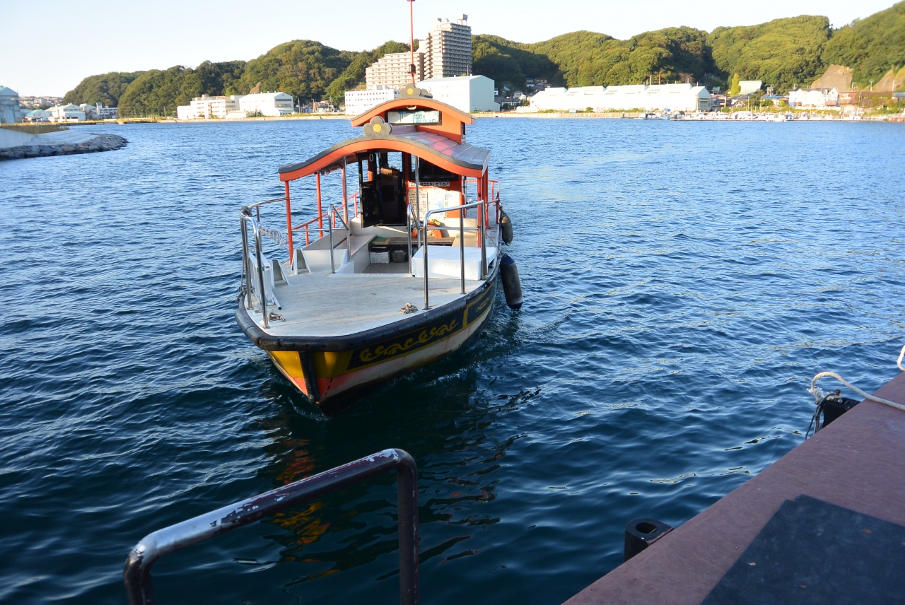 浦賀湾に沿って両側に観光ポイントが分散しています。この両側を迅速に結ぶ手段が浦賀の渡し船です。日曜日の夕方に西側から東側に渡し船を利用して渡りました。朝から夕方まで運行しているようです。私が訪れたおりに、船は東側に待機していたので、渡し船用の簡易桟橋付属のブザーを押して、船を呼びました。お客は私一人でしたが、無事乗せていただきました。乗車賃200円を箱に入れます。船から見える風景は素晴らしかったです。船の乗り降りは船首から行うのですが、桟橋との段差も少なくスムーズにできました。