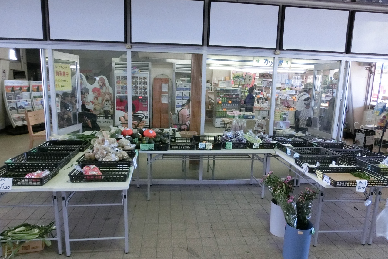 駅では野菜の無人販売などもあり、