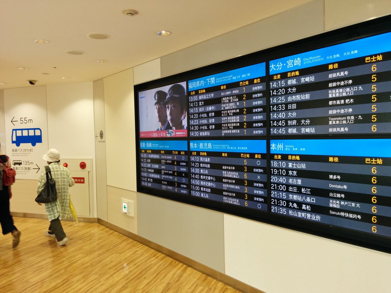このターミナルからの行き先を見ると、宮崎、熊本、四国、本州方面など、福岡市内高速バスターミナル拠点となっていました。