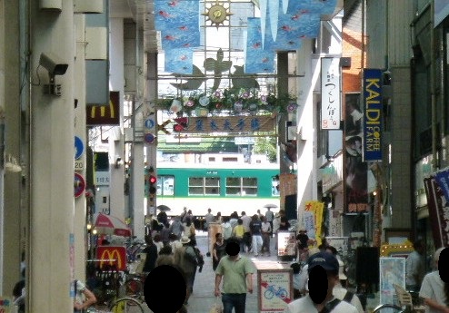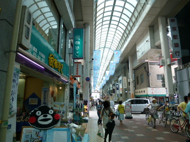 伏見桃山城の城下町だけあって今もその面影を残す町並みです。伏見大手筋商店街は近鉄や京阪の駅から西へ延びていて、西へは下り坂、逆に帰りは登り坂になっています。午前中は車は東への一方通行、また自転車も運転し通行できるので歩行には注意してくださいね。寺田屋で有名な龍馬ゆかりの地なので観光客が多いですね、お酒も美味しいし酒蔵や水郷の街並みを観光する方たちの順路となっています。京都らしい老舗店が多く見れます、また安価のお菓子屋さんやドラッグストアーなどもあり庶民の商店街にもなっています。