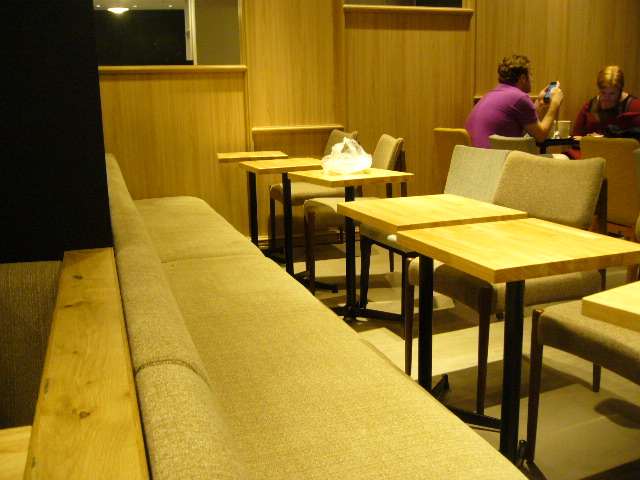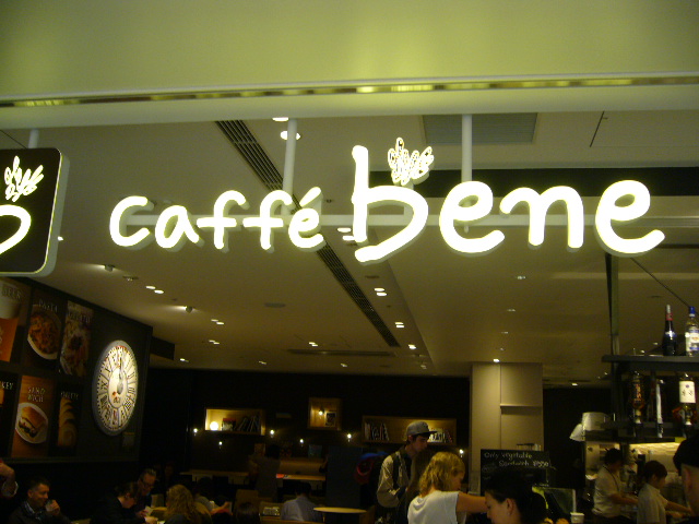 成田空港・第3ターミナル3階の国際線出国審査場を出て直ぐあるのが、韓国生まれでアジアを中心に店舗を広げるcaffe bene(カフェベネ) です。手狭な入口ですが店内は落ち着いた雰囲気で客席も結構ありますがテーブルと椅子がぎっしりした感じです。また壁にかけてあるオブジェもセンスがいいですね。ドリンクだけでしたが美味しかったですよ。