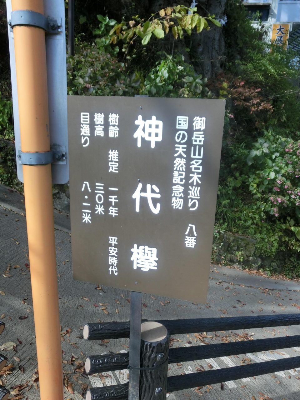 ケーブルで御岳山頂で下車、御岳神社への参道を5分ほど歩いたところに巨木がそそり立っている。