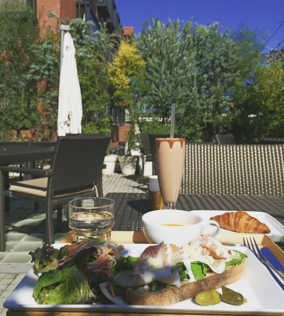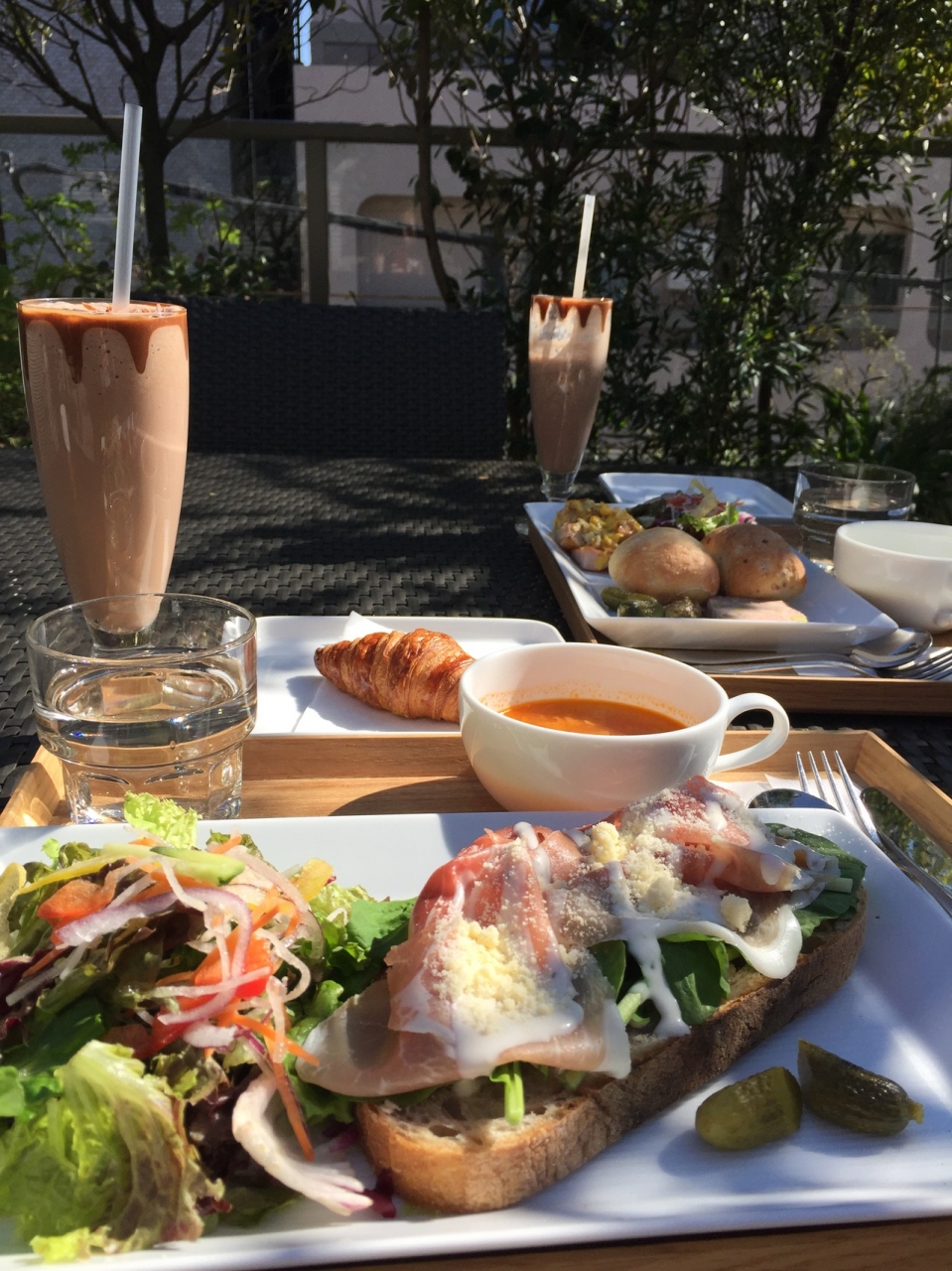 早朝ウォーキングを終えた後ブランチにリンツへ寄ってみた。自由が丘で早朝から営業しているお店は限られていたのでどのお店にしようかと思ったけど9時からの営業だったので迷わず入店。軽食のオープンサンドとスープのetc...11時までのオーダーならチョコレートドリンクやコーヒー等にクロワッサンが付くお値打ちセットも有!クロワッサンは焼きたて?でサクサク!とっても美味でした。もちろんプロシュートが乗ったオープンサンドもチョコレートドリンクもとっても美味しく頂きました。3Fのテラス席は超オススメです^^