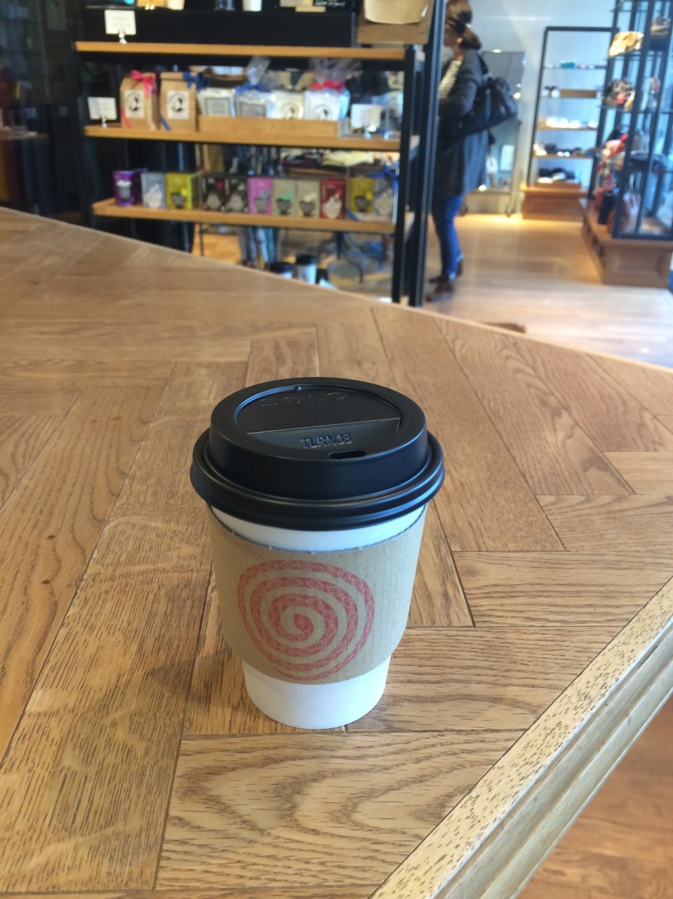 スカイツリーの確か3F、エスカレーターのすぐ近くにありました。キオスクとついていますが、お店の中に椅子がありそこで一休みしながらコーヒーを飲むこともできます。ただし、背もたれがなく高い椅子なのであんまりゆっくりはできないかと。。。スカイツリーの中の他のソファのほうが居心地良さそうです。お値段はスターバックスや、タリーズとスタンダードなコーヒーは変わらないか少し安いくらい。私が注文した期間限定のは、SサイズでスターバックスのフラペチーノのTくらいしました。
