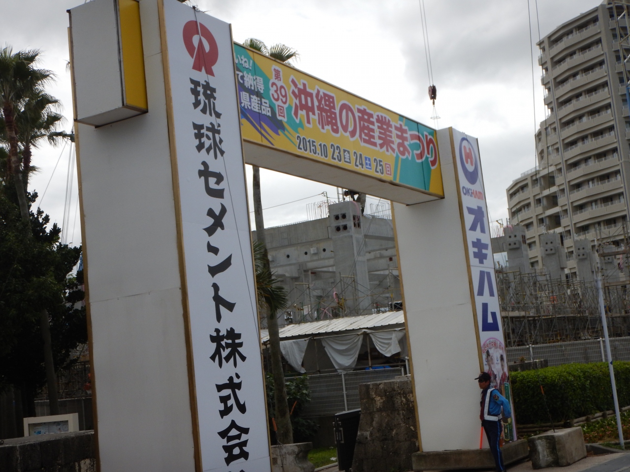 ゆいレール奥武山公園駅は那覇空港駅から3つ目の駅です。テレビで、産業まつりをやっているというニュースを見たので、行ってみました。奥武山公園駅からとなりの壺川駅にかけて、沖縄のいろいろな企業が出店していて見て回るだけで面白かったです。奥武山運動公園の中には弓道場など、いろいろなスポーツ施設があるようでした。