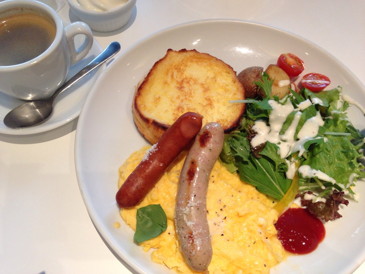 パンケーキを食べようかと、女子4人で利用。 土曜日の3時すぎでしたが、並ばずに入れました。 結局、私は、お昼を食べてなかったので、フレンチトーストのセットで♪ ひとくちわけてもらったパンケーキもおいしかったです。