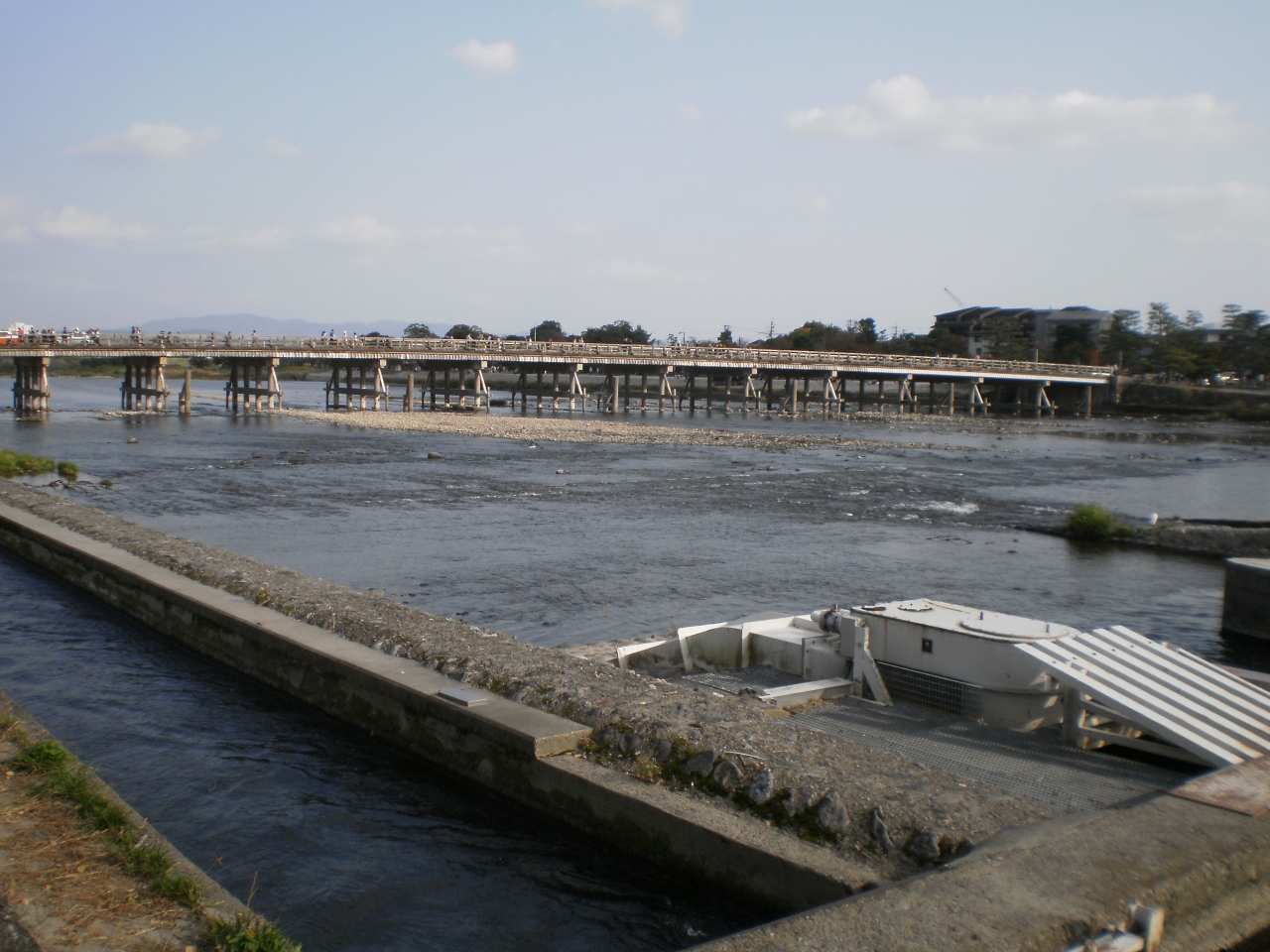 嵐山を代表する景色は桂川にかかる渡月橋や竹林の道などです。嵐山公園の中ノ島地区は京福電車の嵐山駅から渡月橋を渡ったところにあります。途中に目立たないけどローソンがあって、ここで飲み物とお菓子を手に入れて、この公園で桂川をながめながら休憩するのがいいと思います。