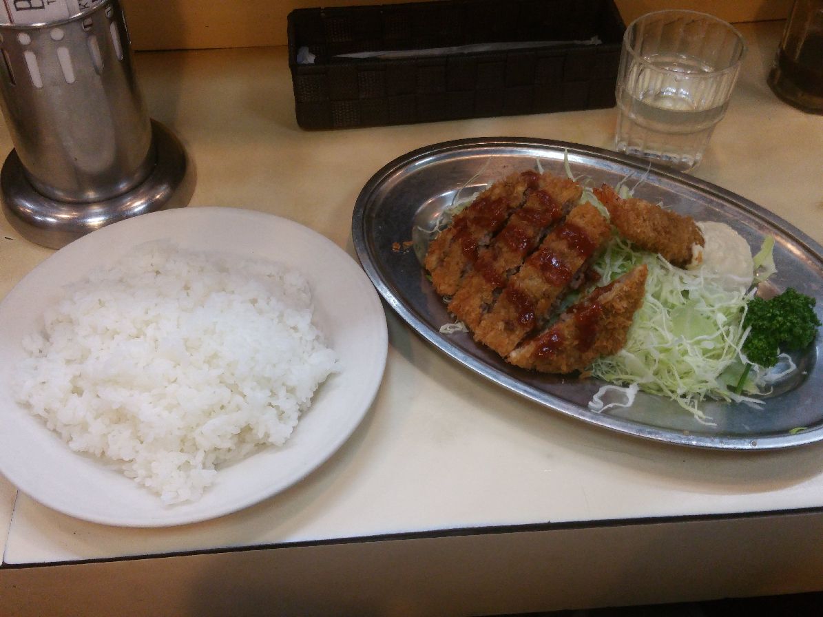 大井町の路地に昼飯場所を探していたら、このお店だけ満席で待っている人たちがいたので入店。芸能関係者も写真付きで来店している様子。テレビにも取り上げられているみたいです。日替わり定食はメンチカツとエビフライ。ライスは多め。味噌汁はトン汁でアツアツ。料理は特に特徴は無かった。トン汁が熱く出てきたのが良かった