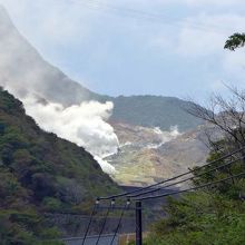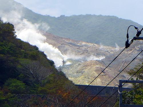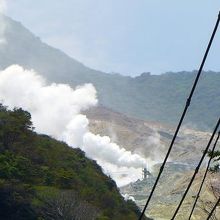大涌谷の想定火口域は、立ち入り規制で入れませんが、規制がかかっていない場所から、ジェット機の離陸音にも似た轟音を響かせる大涌谷は迫力満点で、恐怖を覚えるほどでした。