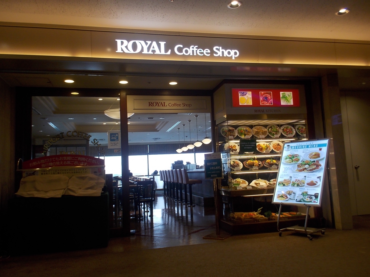 第1ターミナルの4階には3つのレストランがありますが、全てのレストランの名前に「ロイヤル」が付きます。 このレストランは、一番右にありますが、窓側に座れば飛行機の離着陸を見ながら食事が出来ます。 特に夕暮れ時は、夕陽が綺麗に見えるので、気に入っています。