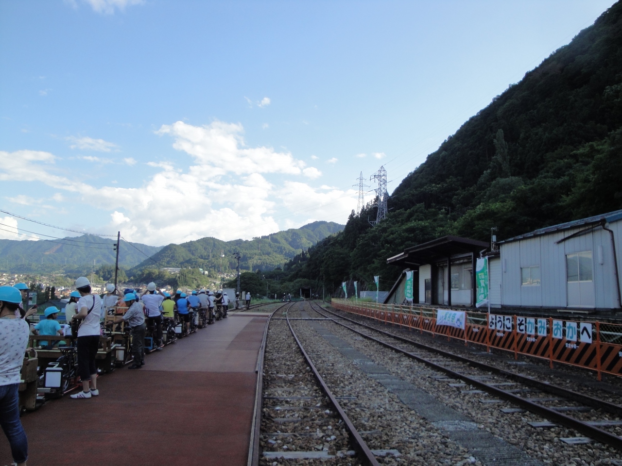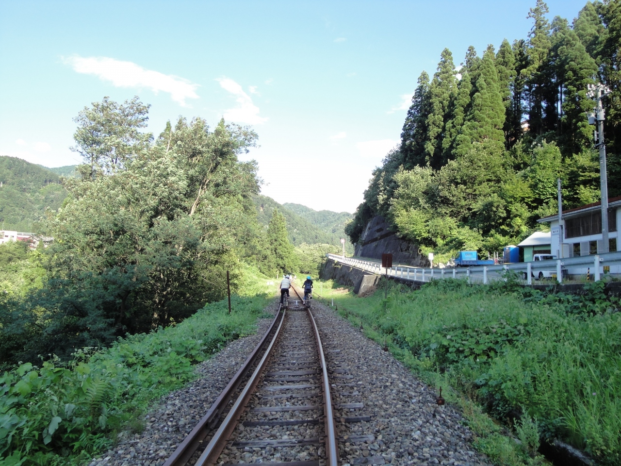 特注のフレームで固定したMTBでレールの上を走ります。往復で約6キロ、行きは緩やかな下りで帰りは反対に上り坂になりますが、電動アシスト付なので体力に自信のない方でも大丈夫だと思います。自転車をこぎながらレールの上を走る音や振動が伝わってきて、なかなか味わえない感覚を体験できます。