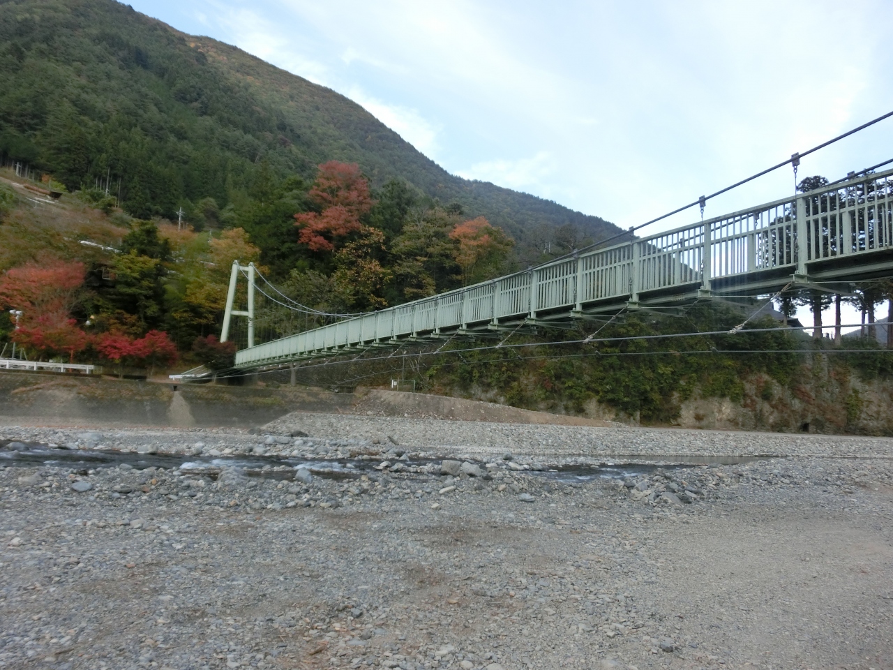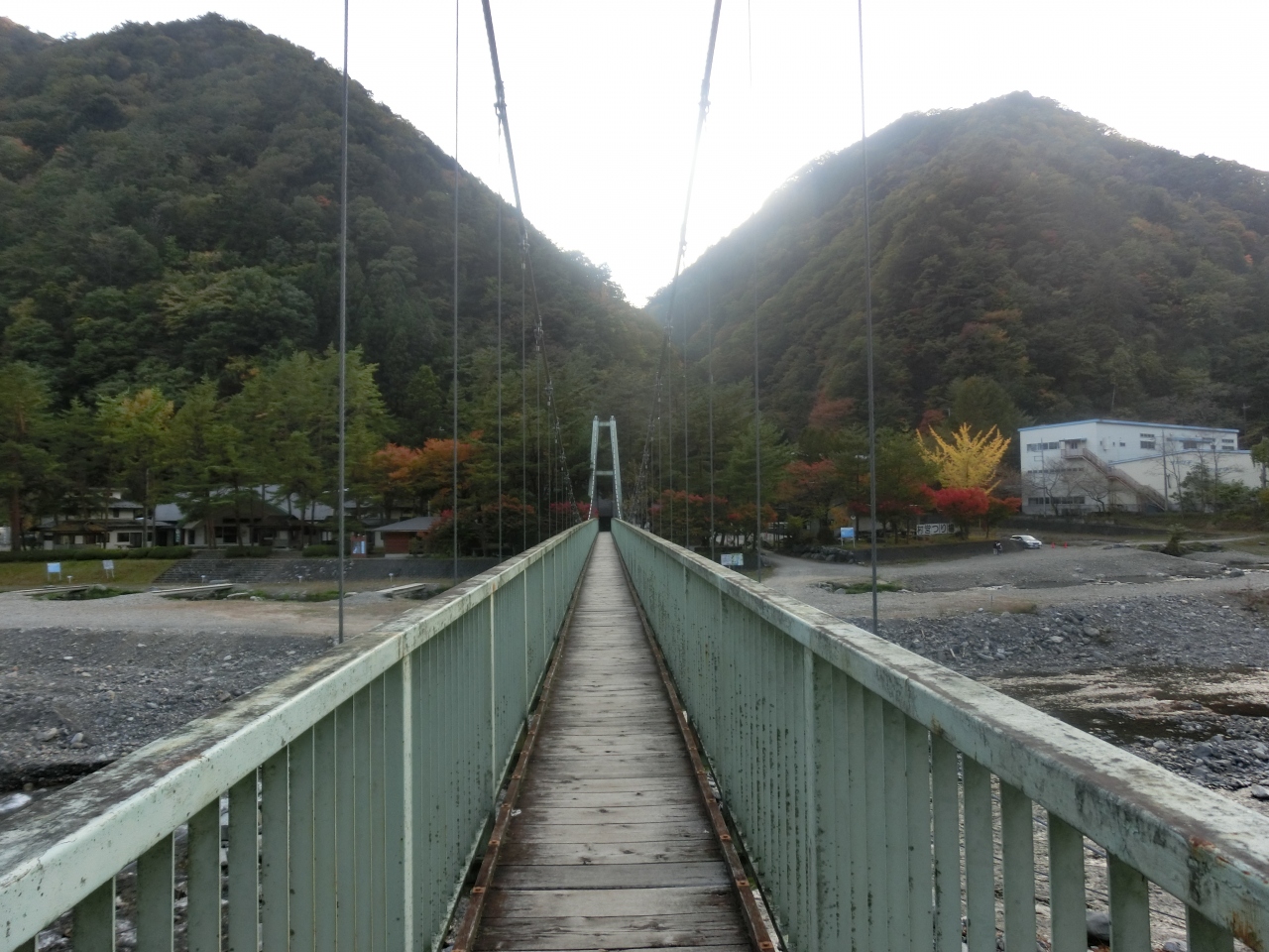離れた場所からながめる橋も紅葉に囲まれて立派に見える。