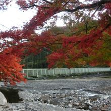 橋の両側は公園風に整備され、今はカエデの紅葉が見ごろ。