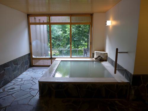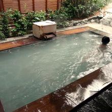 内湯に引かれた新姥子温泉では無色透明の温泉が、露店風呂に引かれた大涌谷温泉では白く白濁した温泉が楽しめます。