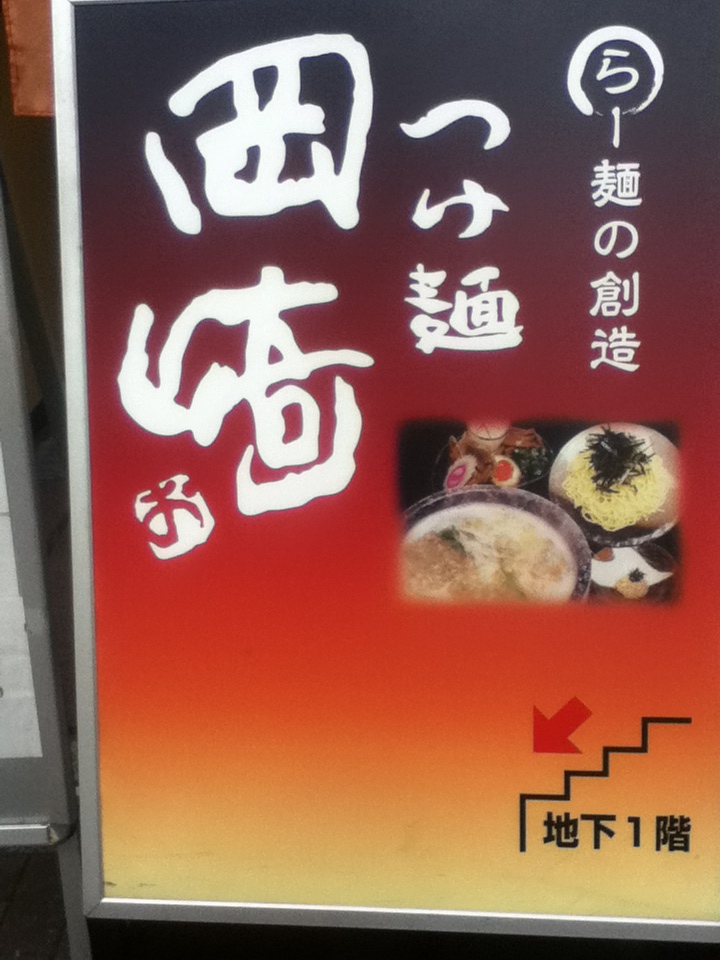JR池袋駅の東側、サンシャシン通り近くのつけ麺屋さん。店頭には、つけ麺の写真が載せられた看板が立っている。地下の店内は一般的なラーメン店とちょっと異なるスナックのような感じがある。黒(醤油)つけ麺を食べたが、スープは油が多め、麺はやや太くチャーシュやメンマが入りまぁまぁの味。気軽につけ麺を食べるにはいいかもしれない。