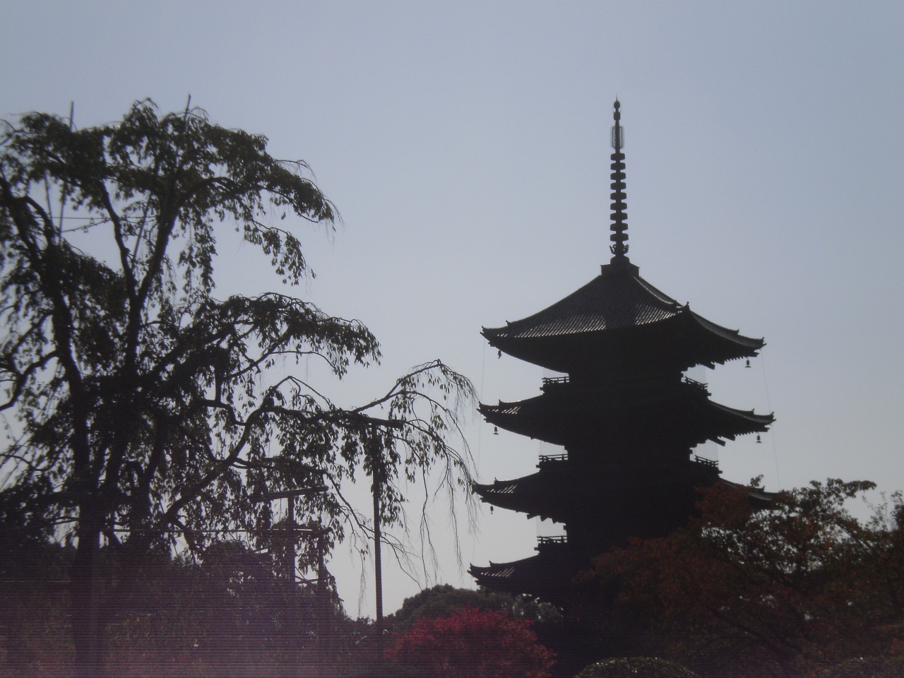 京都市営バスの202番に乗って、東寺南門前で下車しました。ここは南門を入ると、五重塔がすぐに見えてきました。 訪れたのが10月下旬なので、境内では紅葉が始まっていて秋の感じでした。 弘法大師ゆかりの御影堂があって見所多い寺院です。