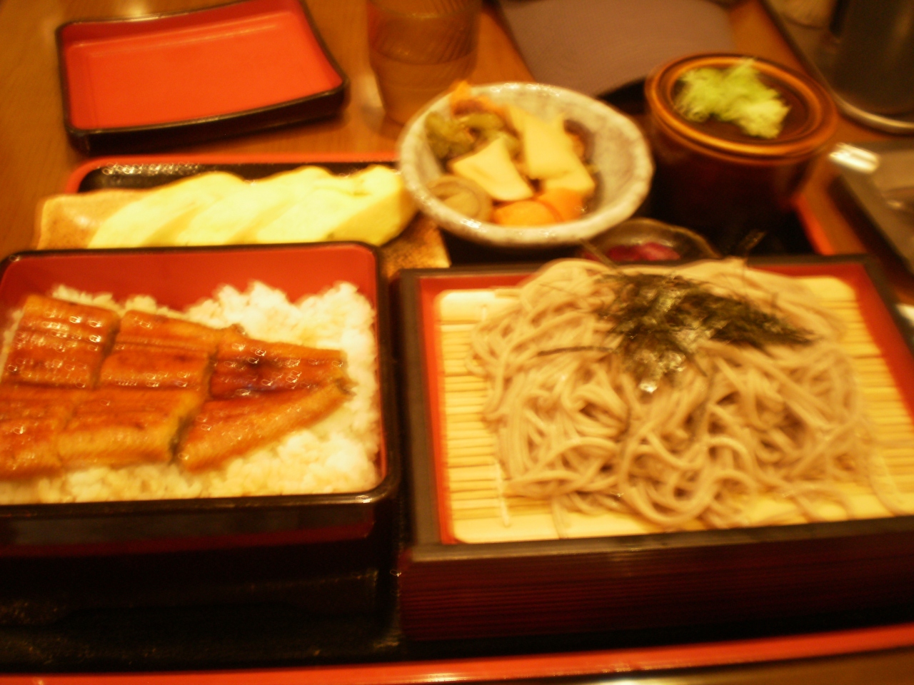京都駅の南側にある東寺に参拝したあと、夕食を食べに立ち寄りました。 近鉄駅に近い居酒屋で奥が細長いお店でした。うな重とおそばのセットをいただきました。 うなぎはやわらかめでおそばは歯ごたえがいい感じでした。卵焼きは薄めの味付けで煮物は煮すぎのようでした。