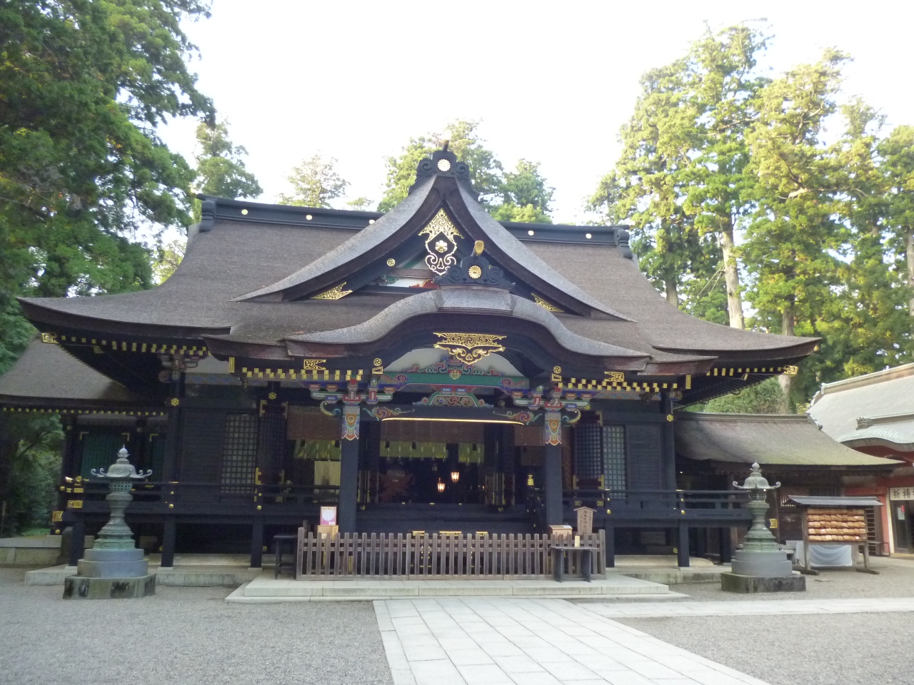 鹿島神宮と香取神宮の両宮にお参りしました。朱塗りのあでやかな楼門をくぐると、森の中に、重厚な黒色の拝殿がありました。ずっしりとした美しさがありました。本殿の屋根は檜皮葺で素晴らしかったです。要石があります。