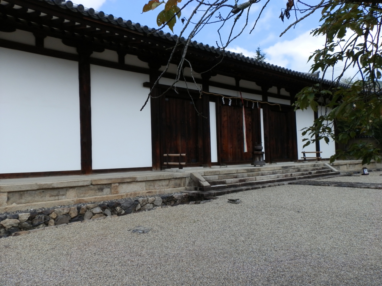 本堂(桁行七間 梁行五間 入母屋造 本瓦葺)奈良時代 国宝。本堂の中に「薬師如来坐像」(木造 像高約191?)奈良時代?平安時代初期製 国宝と十二神将立像(塑像 像高152?166? 奈良時代 国宝 土壇の上で円陣に取り巻いて、お薬師さまを護衛しています。薬師如来坐像・十二神将立像 共に大きく迫って来るような迫力を感じた。国宝を保存する為、撮影禁止になっています。