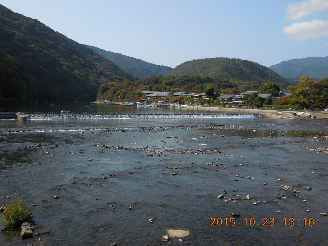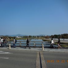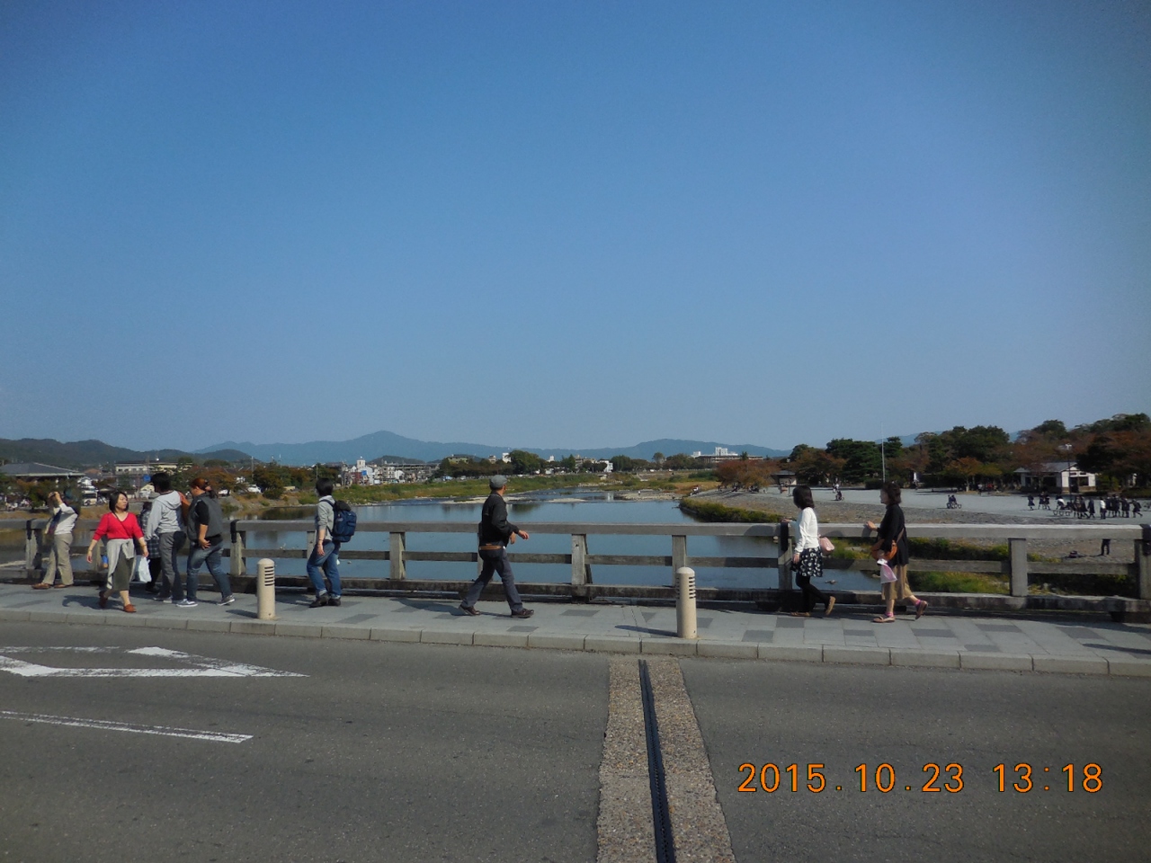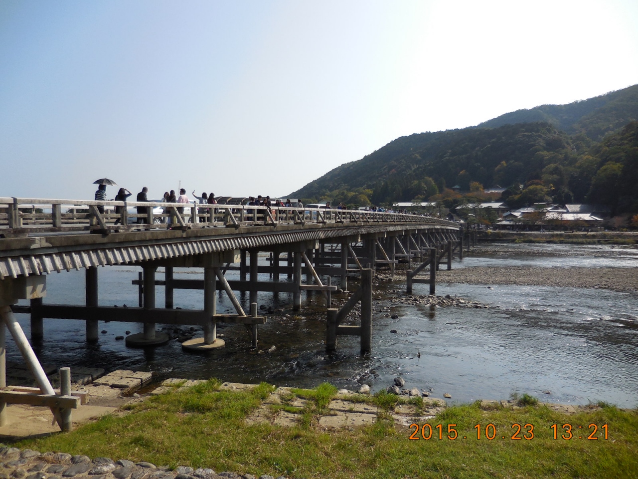 「くまなき月の渡るに似る」うまいこと言うわ(当たり前ですね)。桂川に掛かる全長155mの橋。今回は、阪急嵐山駅から徒歩で向かいます。天気もいいし、絶好の散策日和です。桂川のほとりから渡月橋や対岸の街並みを眺めると、何とも言えない風情がありますね。河川敷でゆっくりした時間を過ごす人達もたくさんいます。好きだなぁ~こんな感じ。