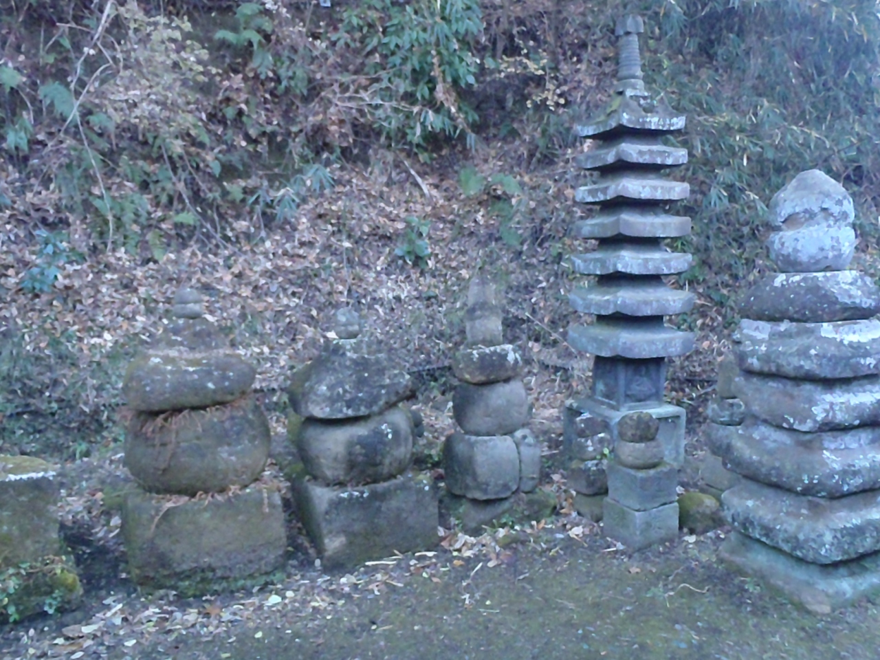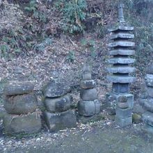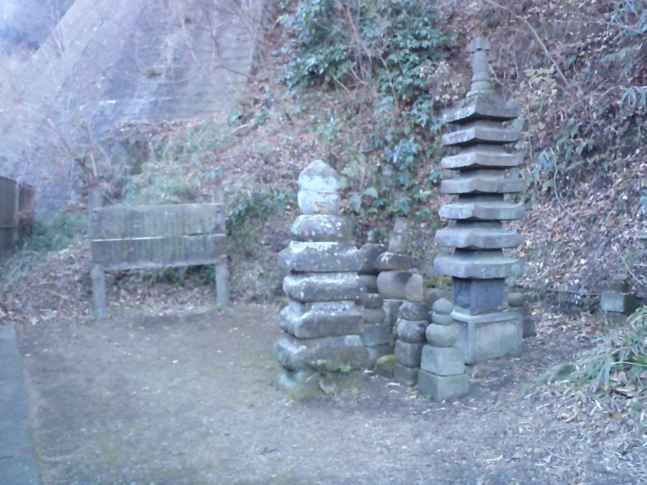 江ノ島電鉄極楽寺駅を下車して極楽寺切通し方向え歩いていくと、アパートの前に小さな石柱があり、アパートの裏へ回り込むように入っていくと七重に重ねられた石塔が建っています。