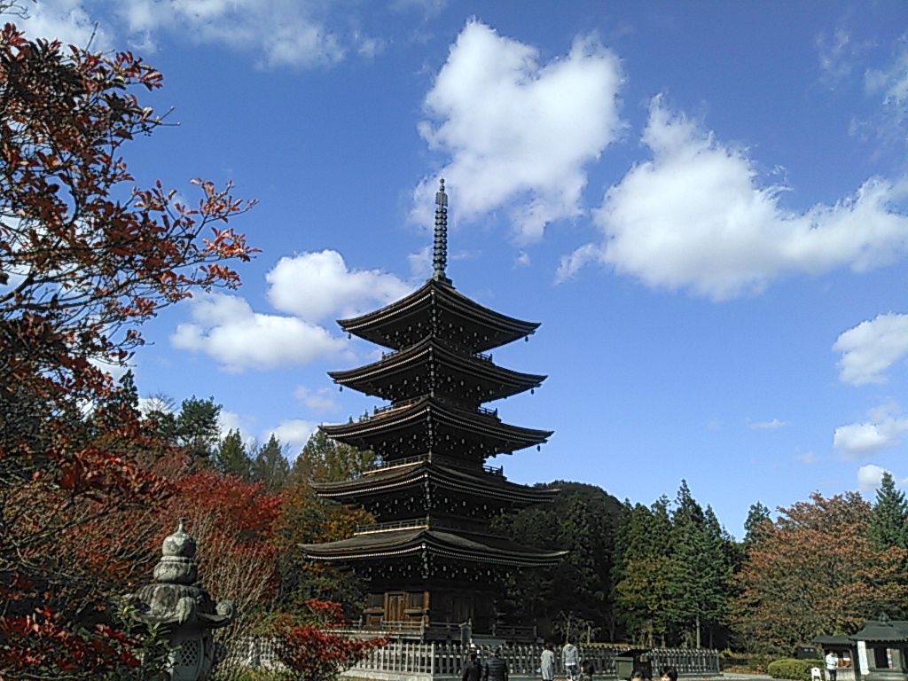 。時期的に紅葉がとてもきれいでのんびり散策する事が出来ました。五重塔の近くには展示室があり、五重塔について詳しく説明された映像もあって分かりやすく良かったです。