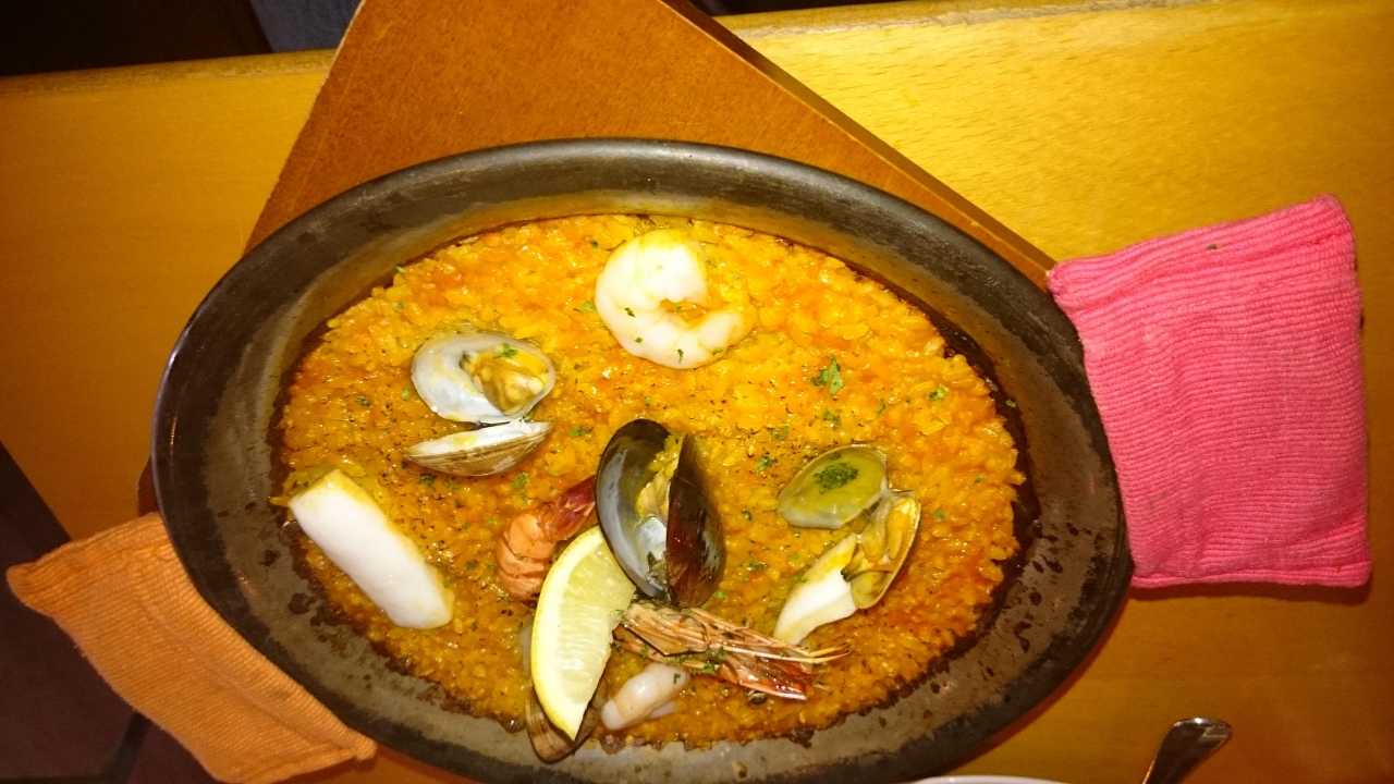 中野駅北口から徒歩10分ぐらいのビルの2階にあります。店内の照明は控えめで昼に行ったので良く分かりませんが、夜なら雰囲気満点でしょう。1000円の日替わりランチのパエリアを注文しました。サラダとドリンクとケーキもついて1000円でした。パエリアは魚介類のダシが効いていて本格的で満点です。カウンターもあるので一人でも入りやすいです。