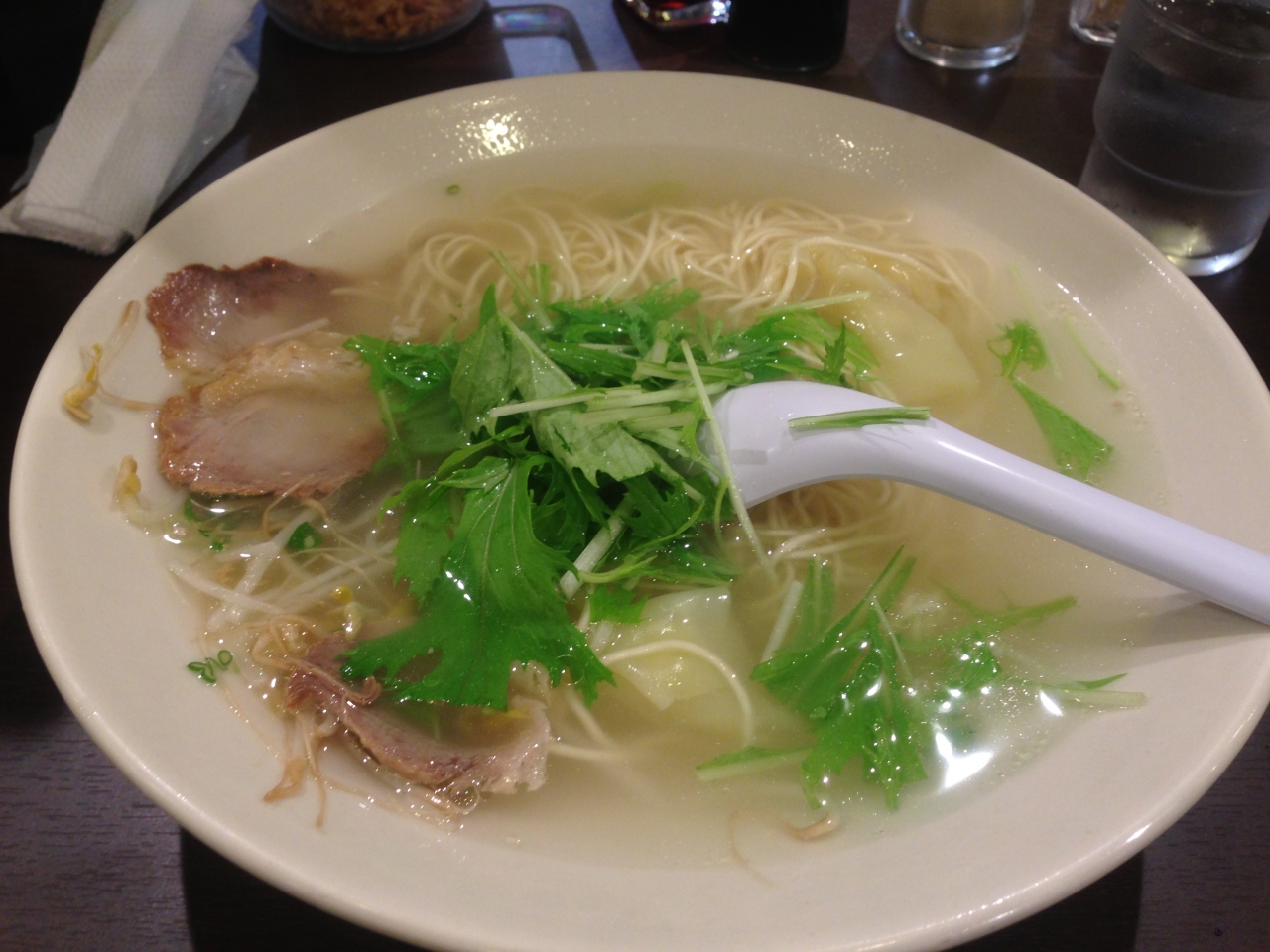 本当にあっさりしているラーメンです。以前の場所からは徒歩3、4分で行けます。あの鏡張りのお店ではありませんが、めちゃくちゃ流行っている訳でもなく、良い意味で落ち着いた感じです。近くにある一風堂はいつも行列。恐らくガイドブックにも掲載されているのでしょう、中国語や韓国語を話す人が並んでいることも多いです。揚子江のラーメンはスープがあっさりしているだけでなく、ネギも入ってません。水菜です。昔は菊菜でしたが、5年くらい前だかに野菜がすごく高騰した際に水菜に代わりました。飲んだ後に〆(しめ)でここのラーメンをするするっと食べて帰る人もいます。好みが分かれる味ですが、まだまだ頑張ってほしいです。