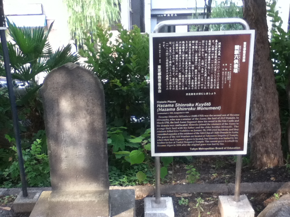 地下鉄築地駅のすぐ横、築地本願寺の境内の左側奥にこちらの塔と説明板がある。隣にも幾つかの石碑が並んでいる。供養塔の文字はやや読みにくいが、説明板にはわかりやすく解説されている。新六は四十七氏の一人で、本懐を遂げて吉良邸から高輪泉岳寺へ引き揚げる途中、携えた手槍に金子50両を結びつけ、自身の供養料として本願寺の塀外から内へ投じたとのことである。忠臣蔵やこの界隈に関心や知識のある方は、訪問するのもいいかもしれない。