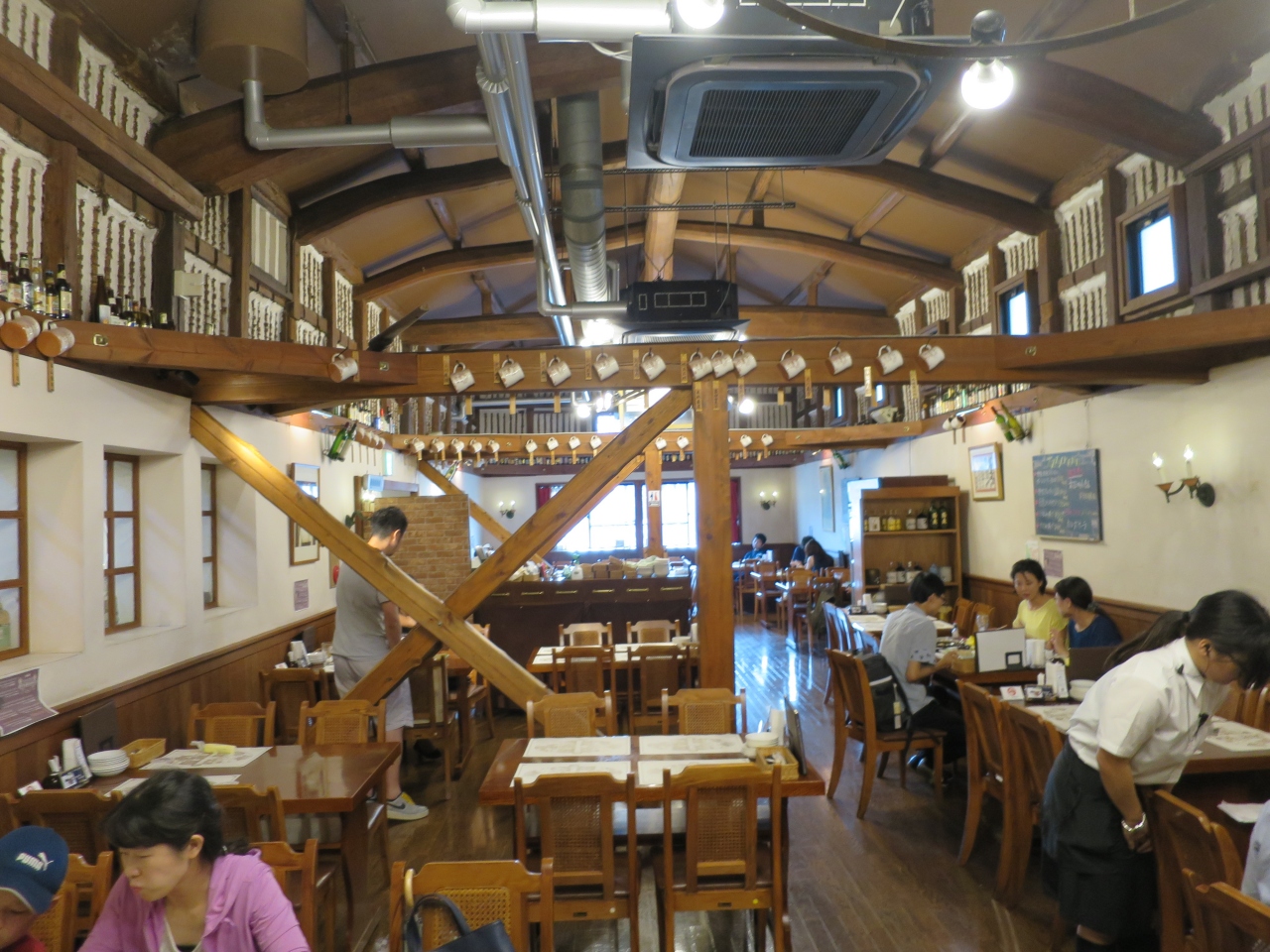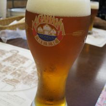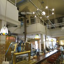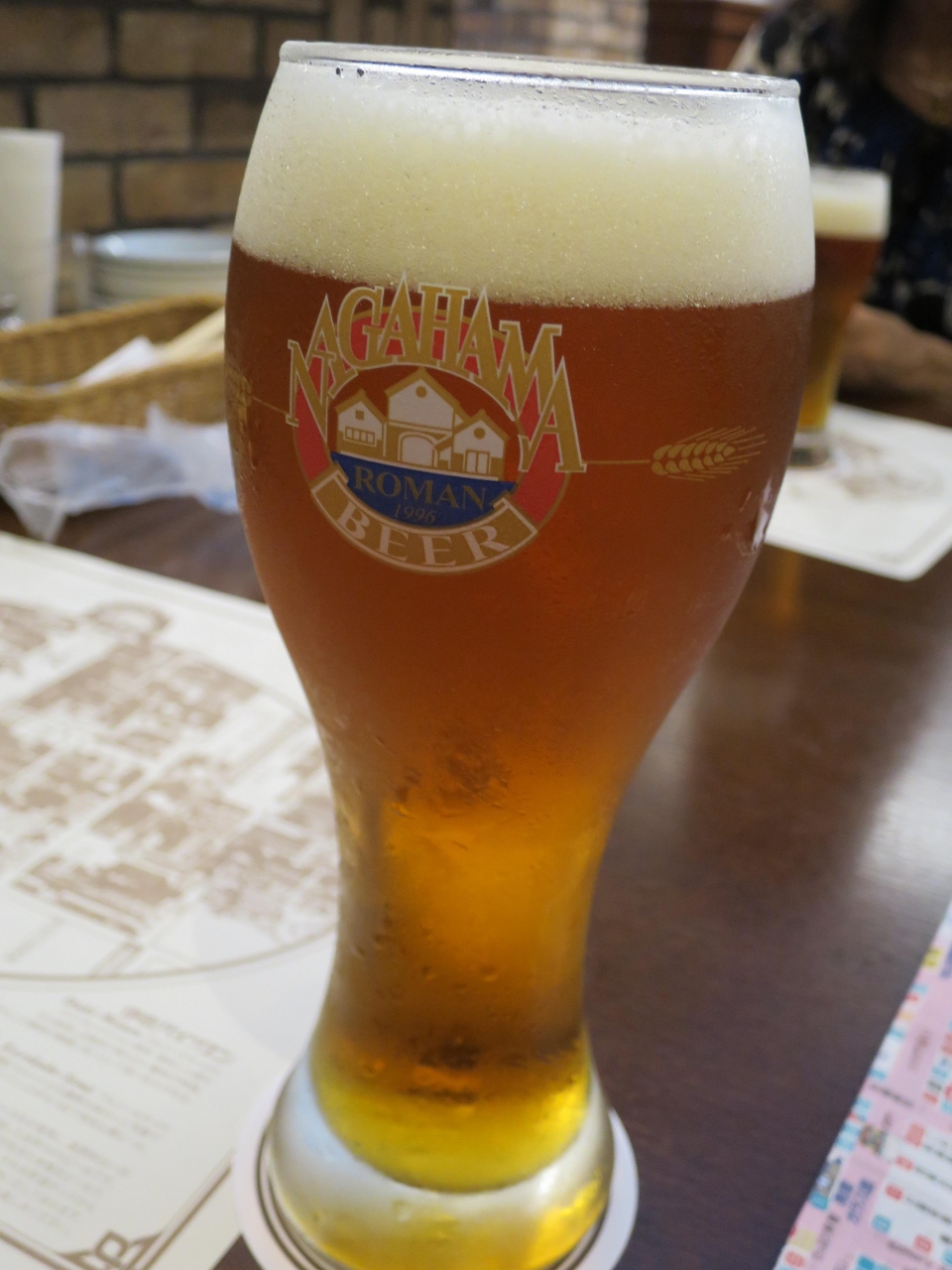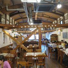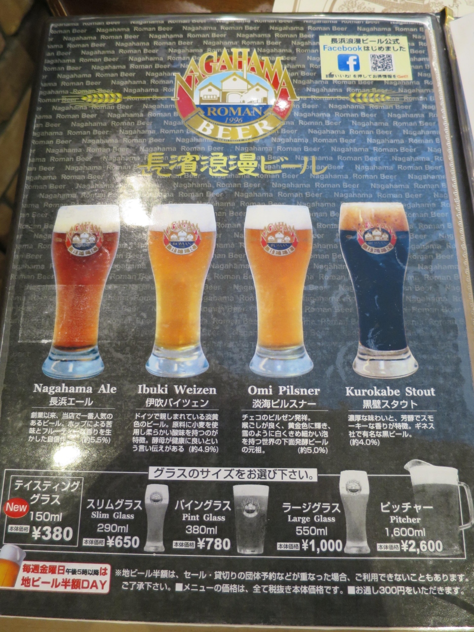 長浜の米川沿いにある江戸時代の米蔵を改装した地ビールレストランです。店内にはカウンター席とテーブル席があり、カウンターの奥の貯槽タンクからビールが注がれます。地ビールには長浜エール、伊吹バイツェン、淡海ピルスナー、黒壁スタウトの4種があります。料理は近江牛を始めとした沢山のメニューがあり結構迷います。