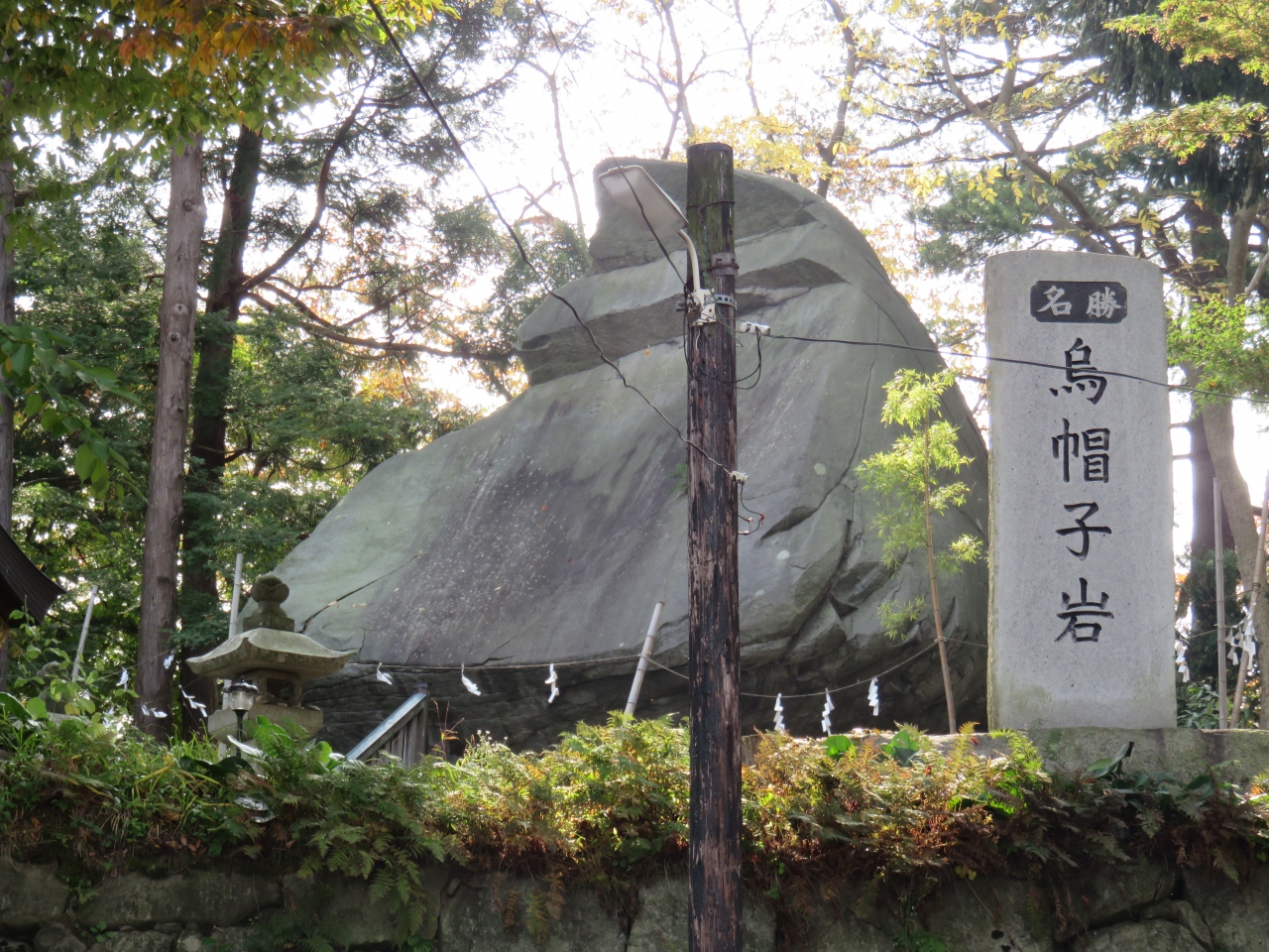 この巨石の形が烏帽子状をしているので、「烏帽子岩」と呼ばれる所以です。