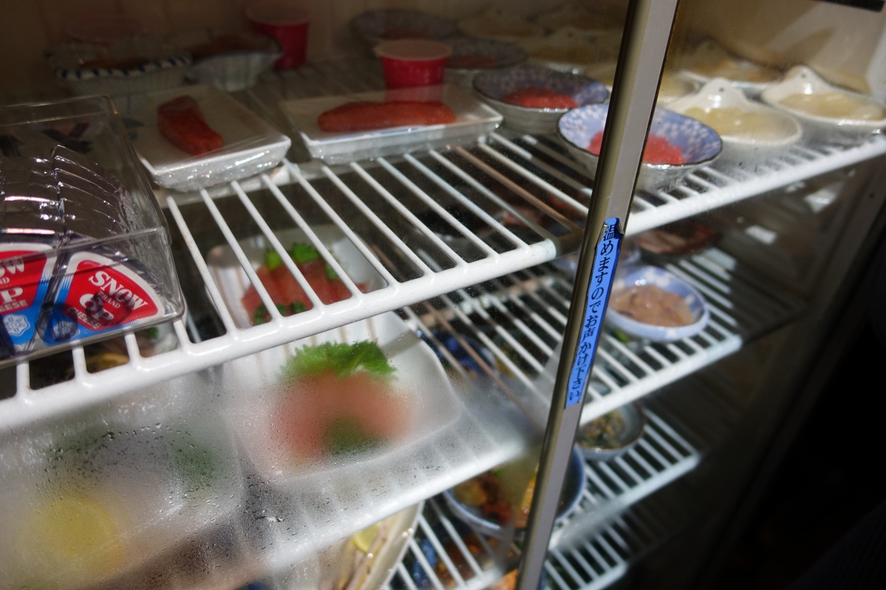 この店基本的にフリーダム。自由だ~。どういう行動をしてもいいみたい。棚の缶詰を勝手に食ってもいいし、その缶詰を隣の人と食ってもいいし、ツマミを注文しなくてもいいみたい。それをすべて仕切るのは、ロックなニイちゃんだ。この人の人さばきは天才だ。 奈良のおっちゃんたち数人と、同時に話してる。まついしさんの魅力は、ロックなニイちゃんにあると思う。良き店です。