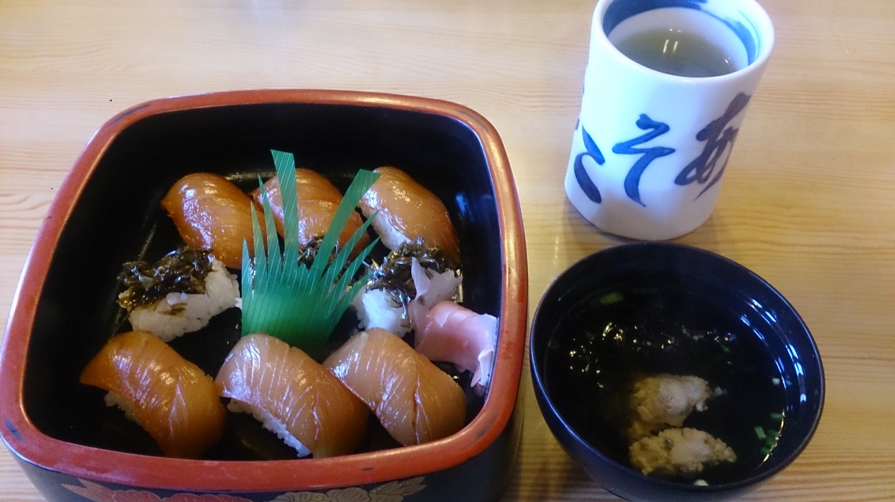 前日に予約を入れ、島寿司を頂いた。お吸い物付で2,100円(税込)店主の方が今日の魚の説明をしてくれた。店内には著名人のサインが飾られていたり、昔ながらのお寿司屋さんの雰囲気。日曜日の12時に伺ったが、私たち以外は他にお客さんはいなかった。量は少なめ。
